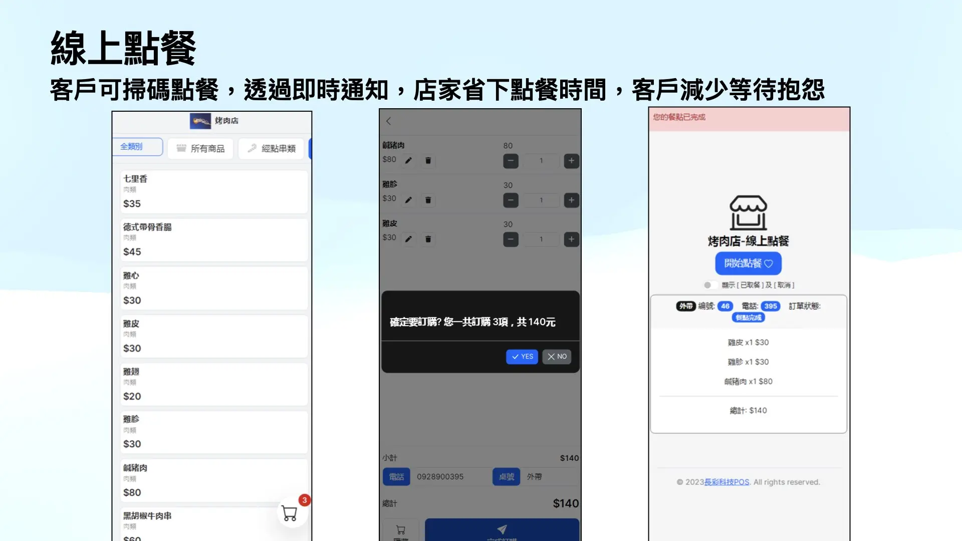 客戶可掃碼點餐,透過即時通知,店家省下點餐時間,客戶減少等待抱怨。