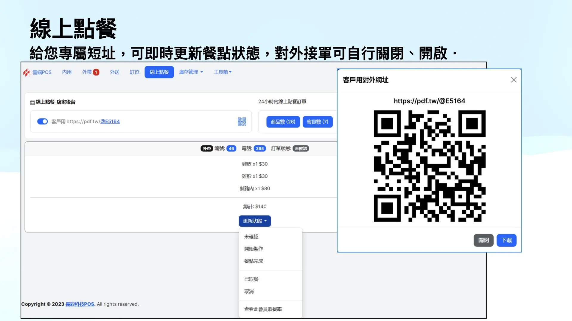 給您專屬短址,可即時更新餐點狀態,對外接單可自行關閉、開啟.